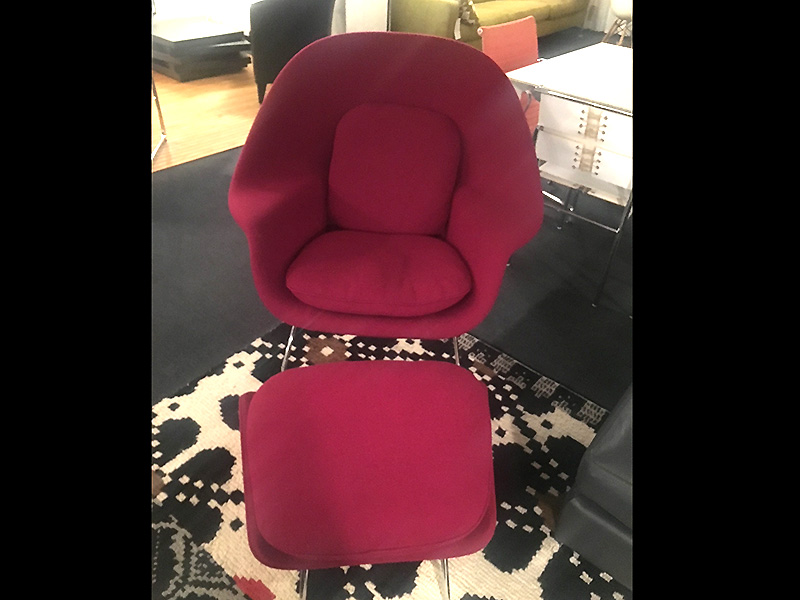 Sessel mit Hocker, Gestell verchromt, Bezug Hallingdal fuchsia-burgundy