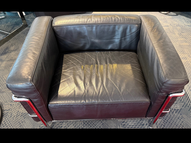 "Bezug Leder Cat. Alfa, Farbe schwarz, Gestell Metall nickelfarbig lackiert "